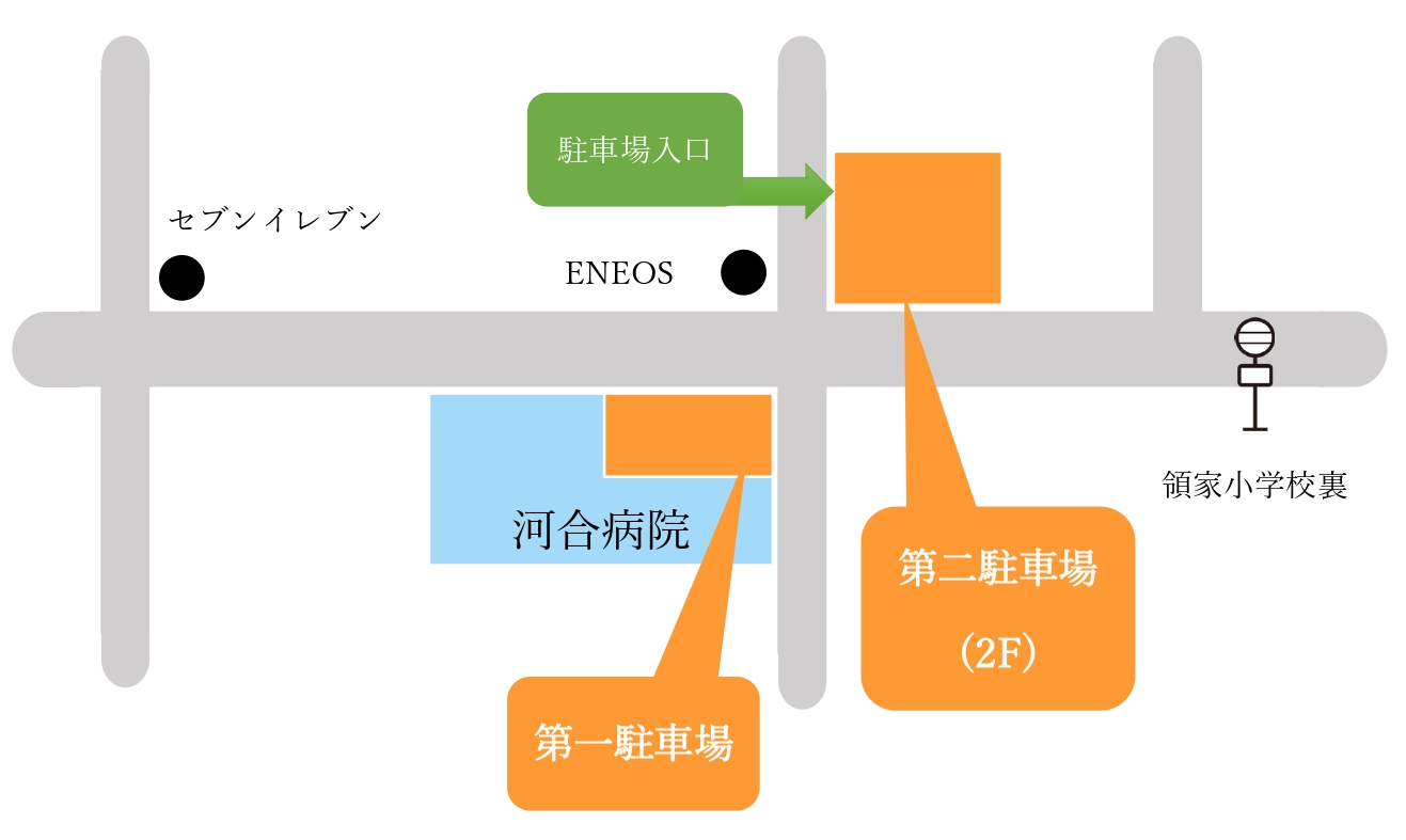 ご来院の際は、直接当院駐車場までお越しください。第一駐車場が満車の場合は第二駐車場をご利用ください。