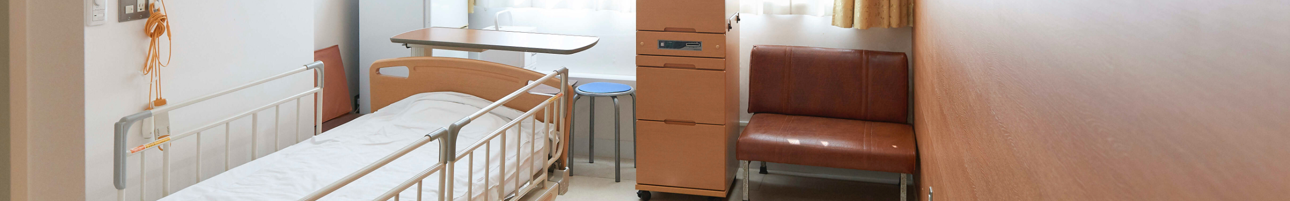 当院では、ご入院される患者様が入院生活を快適にお過ごしいただけるよう有料の個室、準個室ををご用意いたしております。大型テレビ、冷蔵庫、シャワー、トイレ、電動ベッドなど充実した装備とくつろぎの空間のなか、安心して療養できる環境を提供いたします。ご希望の方はご気軽にスタッフまでお声掛けください。